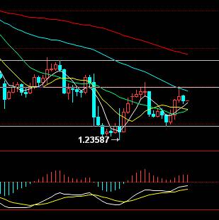 4H 欧元昨日基本局限于1.2395-1.2499区间波动,今日解盘过程中我们提及欧元与其他非美货币一同的是,提前启动的下跌势必将面临着一波回补行情,昨日欧元恰如其分的演绎了时间和空间的结合,在欧盘时段回调至1.2395获得支撑展开了反弹,至收盘上方未能形成突破后略有反复,目前均线系统依然呈现无序状态,短期均线略有拐头,中长期均线上方承压,MACD零轴下方红柱略有收缩,昨日美盘的收盘意味着今日将继续出现小幅的震荡,上方阻力1.2495,1.2536.下方支撑1.2435,1.2385.
